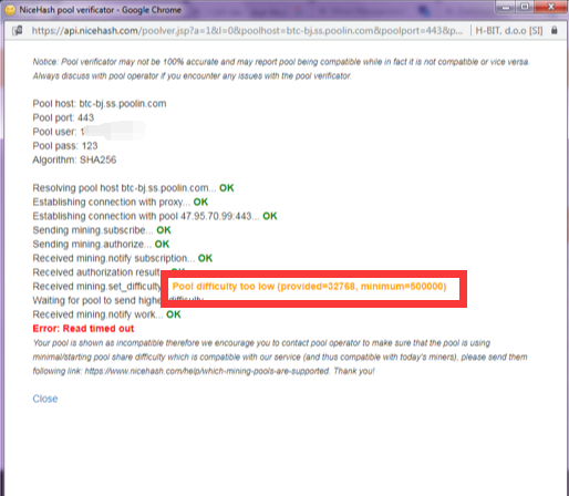 Nicehash作为加密货币挖矿算力市场,用户可以在该平台上购入算力并连接至币印矿池挖矿。但用户使用中通常遇到的一个问题是算力连接矿池后显示难度太低无法挖矿,如下页面